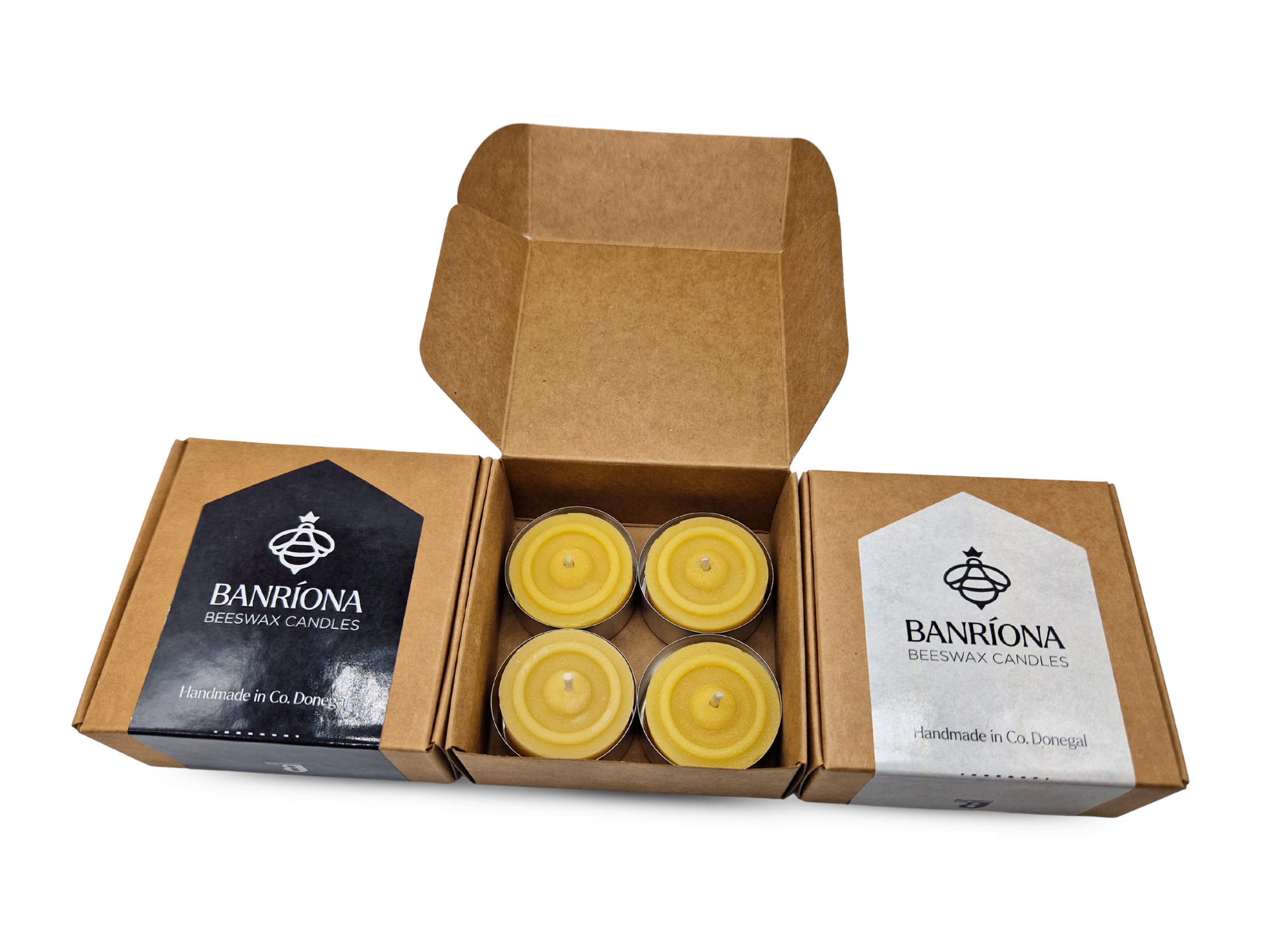 Tealight Set: 4 Pure Beeswax Tealights in Tin Holders