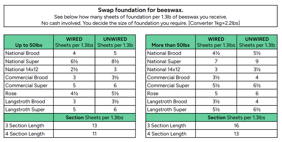 Looking to produce your own beeswax sheets? Our excellent wax exchange service gives you the chance to exchange your raw beeswax for foundation sheets.